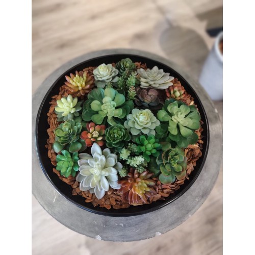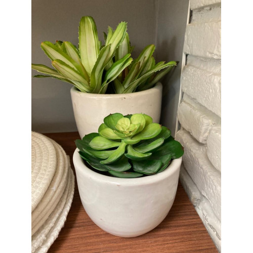 Suculenta Suc muito realista, que não precisa de muitos cuidados no dia-a-dia, manutenção com pano úmido.